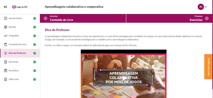 É um vídeo, gravado pelo próprio professor conteudista, com o intuito de trazer para o aluno um olhar diferente sobre o conteúdo com base em suas vivências e experiências, aprofundando um tema de forma exemplificada. Os vídeos possuem, em média, 4 minutos, e têm relação com um ou mais objetivos de aprendizagem.